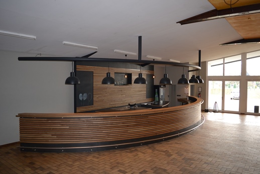 ist die Halle für ca. 400 Personen. Nach einem Umbau im Herbst 2017 wurde die gemauerte Front der Schützenhalle geöffnet und durch eine helle Glasfront ersetzt. Außerdem erhielt die Halle von Außen einen neuen Anstrich und eine moderne Theke In der Sektbar, mit mobilen Theke versehen, werden oft kleinere Familienfeiern abgehalten. Kühlhaus und Küche mit Spülmaschine sind ebenfalls vorhanden. Sowohl Schützenhalle, als auch Sektbar können Sie für Ihre Feier mieten........einfach mail an: halle@schuetzen-haffen.de